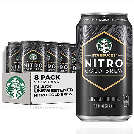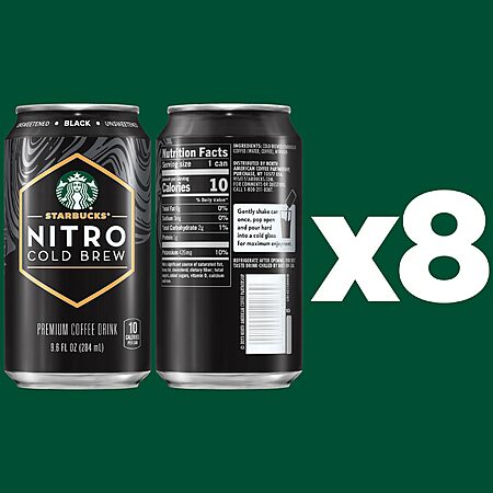 $22.94: Starbucks RTD Coffee Nitro Cold Brew, Black Unsweetened, 9.6 fl oz Cans (8 Pack)