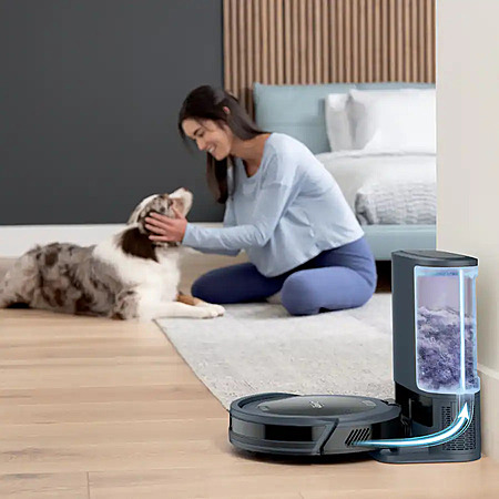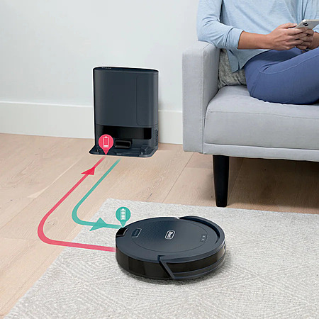 • Self-Emptying Base: The vacuum automatically returns to its dock to empty its bin, allowing for weeks of cleaning without manual maintenance.