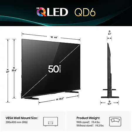 50" Hisense Class QD6 Series QLED 4K UHD Smart Fire TV (2025) $199.99 + Free Shipping