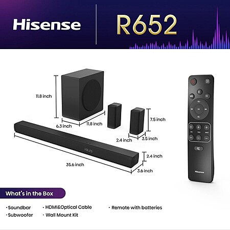 Refurbished - Hisense R652 5.1 Channel Soundbar w/ Subwoofer & Rear Surround Speakers $87.20 + Free Shipping