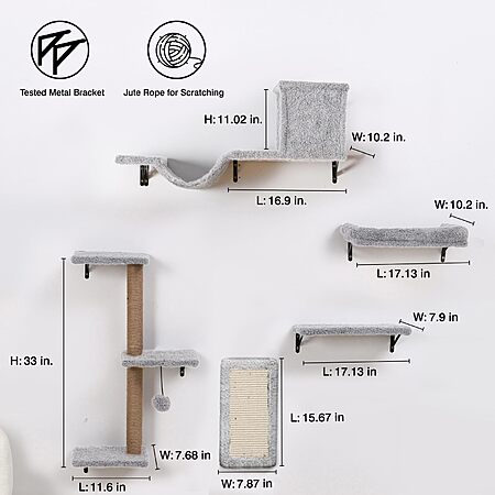 5-in-1 ZLAFM Space-Saving Multi-Level Cat Climbing Wall Mounted Shelves $34.99 + Free Shipping w/ Prime or on $35+