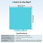 Perfect Compatibility: CryoGrip Pro Glacier build plate is suitable for Bambu-Lab P1S, P1P, P2S, X1C, X1E, X2D, A1 3d printers. It is compatible with PLA(45-55℃), PETG(60-75℃), ABS, PA and other filament. Please NOTE the Glacier printing adhesion not as good as Frostbite with PLA and PETG, and if you are using P2S, please close the build plate printing detection