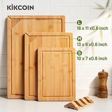 - 100% BAMBOO: Kikcoin bamboo wooden cutting boards for kitchen showcase the authentic bamboo grain and texture. A meticulous polishing process and a food-grade oil coating deliver a smooth, burr-free finish that resists cracking