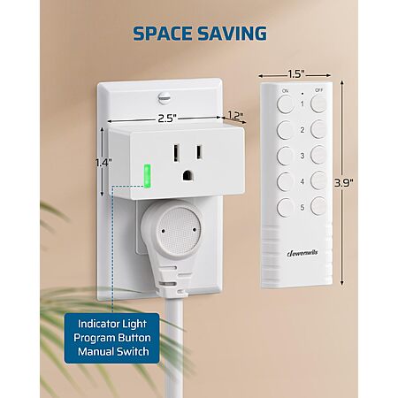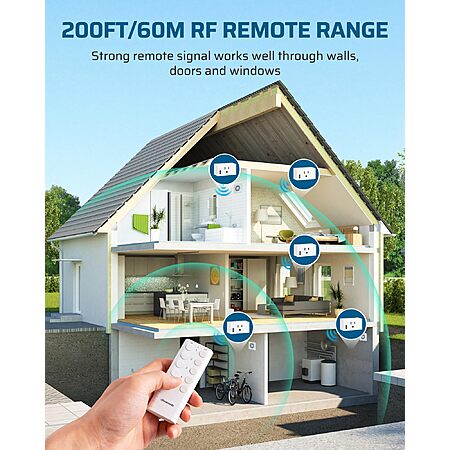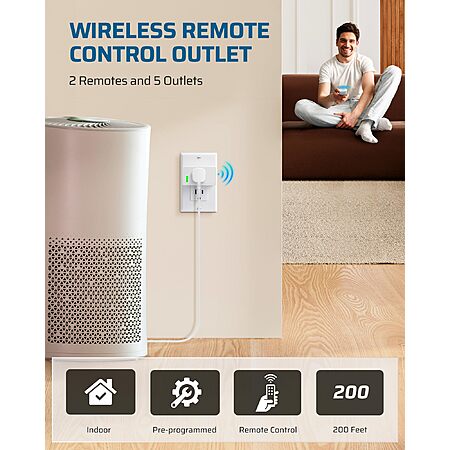 DEWENWILS 200FT 15A/1800W Range Remote Control Outlet, ETL Listed (5 Outlets + 2 Remotes) $21.59