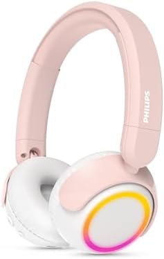 Model: Philips K4200 Wireless Headphones for School, Kids Headphones with Cord, Customizable Ear Cups, Durable and Foldable, Ultra Lightweight, Built-in Mic, On-Ear Girls Boys Toddler Headphone, Pink