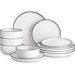 Prime: 12-Piece Malacasa Porcelain Dinnerware set (Service for 4, Ivory White-Black Rim) $30.99 + Free Shipping