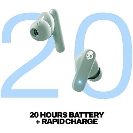 Model: Skullcandy Smokin’ Buds Wireless Earbuds, Bluetooth Headphones, Noise Isolating Fit, Up to 20 Hours Battery, IPX4 Sweat and Water Resistant, Microphone for iPhone Android - Preppy Sage