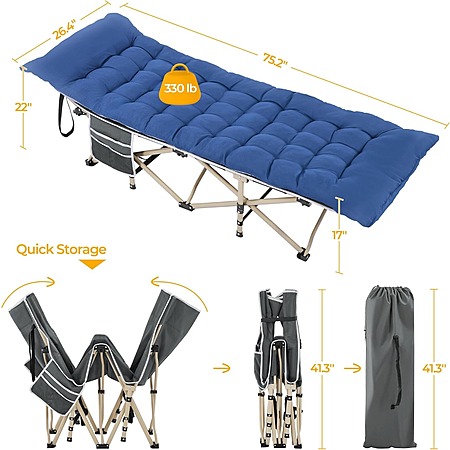 Yaheetech Folding Camping Cot w/ 3" Thick Mat and 330lb Capacity $50.15 + Free Shipping