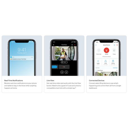 Ring Home Standard ($9.99/mo or $99.99/yr): Covers all devices at one location, includes basic features plus "doorbell calls" (phone rings when button is pressed) and extended live view.