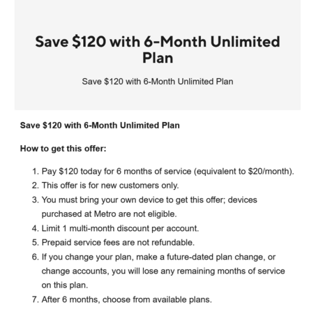 New customers. $120 for 6 months 5G Unlimited.