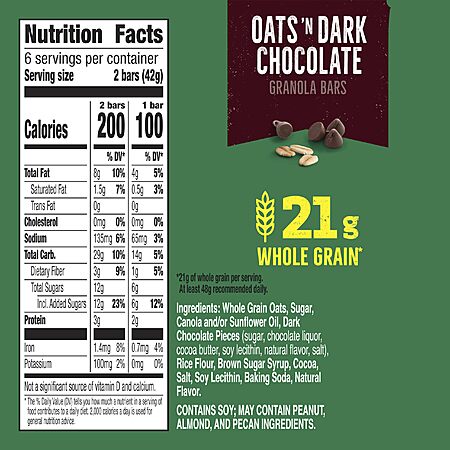 Model: Nature Valley Crunchy Granola Bars, Oats 'n Dark Chocolate, 12 Ct, 8.94 oz (6 Pouches)
