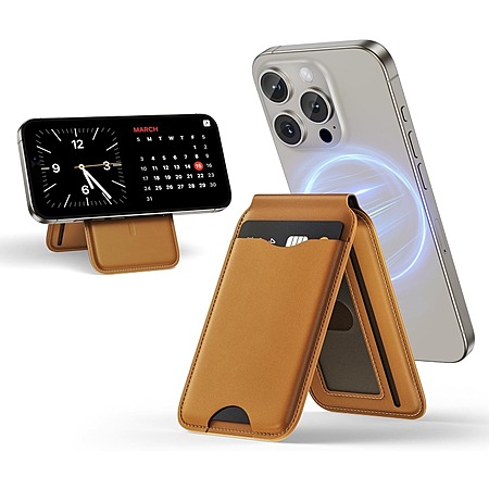 LULULOOK 3 Cards Full Grain Magnetic Leather Wallet w/ Adjustable Stand $10 + Free Shipping w/ Prime or orders $35+