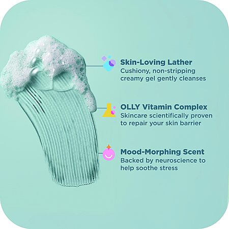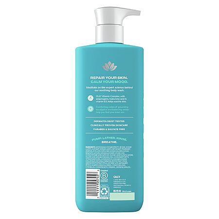 - Meet OLLY CALM MOOD + SKIN Body Wash—a creamy, non-stripping gel cleanser designed to bring your skin and mood back into balance. Powered by clinically studied ingredients, this dermatologist-approved formula helps repair your skin barrier with OLLY Vitamin complex, infused with a blend of hyaluronic acid, adaptogens, vitamin B3. Developed by skincare experts, it's ultra-nourishing and gentle—so it cleanses without ever leaving your skin feeling tight, dry, or uncomfortable. But we didn't stop at skin. We teamed up with top fragrance houses and neuroscientists to create calming, science-backed scents that help you feel more grounded every time you lather up. The result? A sensorial experience that transforms your daily shower into a self-care ritual. Every bottle is made by the same wellness experts behind your favorite OLLY supplements—so you know it's rooted in real science you can trust. Use CALM MOOD + SKIN Body Wash solo for a soft, lingering scent, or layer it with our matching Body Serum to lock in hydration and amplify the fragrance. For the full feel-good routine, pair it with our fan-favorite Goodbye Stress gummies before or after your shower to support calm from the inside out. Skin-soothing, mood-morphing, and totally OLLY—this is your chill, bottled.