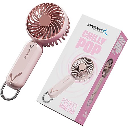 SABRENT ChillyPop Mini Portable Fan with Hanger, [amazon.com] USB-C Rechargeable Handheld Personal Fan, 3 Speed Quiet Mini Cooling Fan, Up to 8H Runtime: