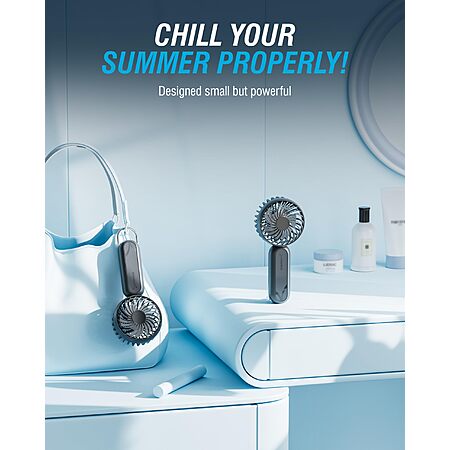Model: SABRENT ChillyPop Mini Portable Fan with Hanger, USB-C Rechargeable Handheld Personal Fan, 3 Speed Quiet Mini Cooling Fan, Up to 8H Runtime for Travel, Office, Bedroom, Camping in Grey (HF-M2WH-GRY)