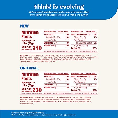 Model: think! Protein Bars, High Protein Snacks, Gluten Free, Sugar Free Energy Bar with Whey Protein Isolate, Brownie Crunch, Nutrition Bars without Artificial Sweeteners, 2.1 Oz (12 Count)