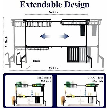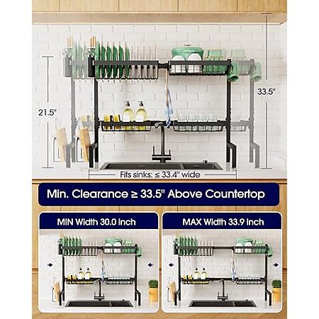 [Prime] $19.99* | Kitsure Adjustable Over Sink Dish Rack (30" to 33.9", 21.5" H) at Amazon