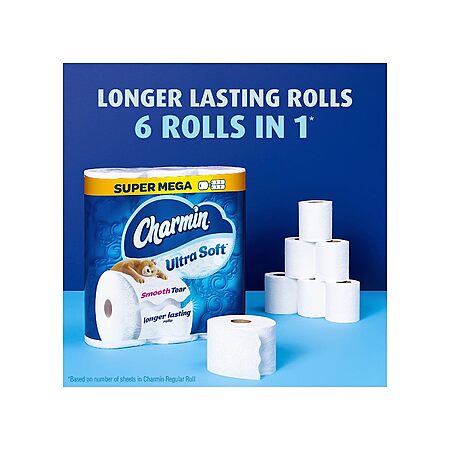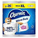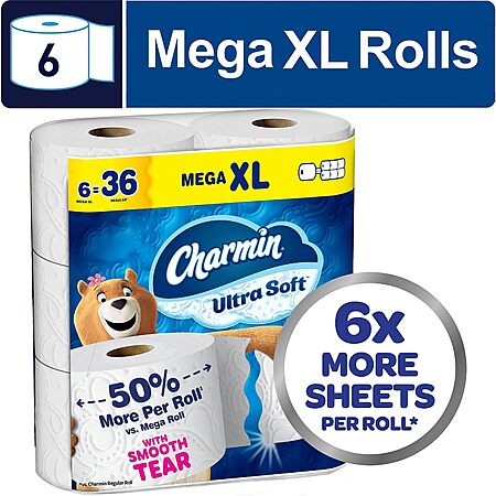 Charmin Ultra Soft Toilet Paper 6 Mega XL Rolls, 336 Sheets Per Roll (Packaging May Vary) $11.94