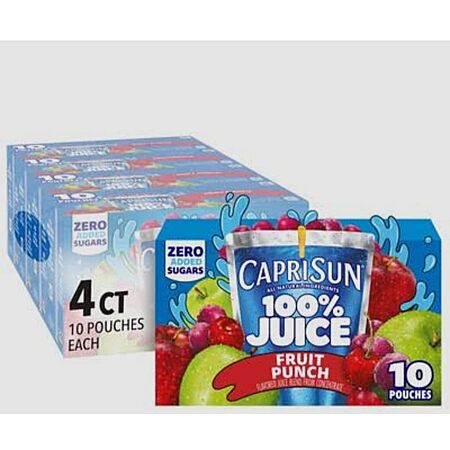 Model: Capri Sun Roarin' Waters Fruit Punch Wave Naturally Flavored Water Beverage (40 ct Pack, 4 Boxes of 10 Pouches)