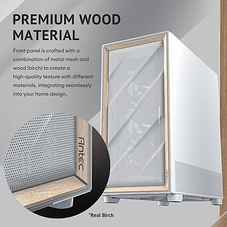 Model: Antec FLUX Wood White, 5 x PWM Fans Included, High-Airflow Front Panel With Birch Wood, Type-C, 420mm Radiator & Back Connect Motherboard Support,...