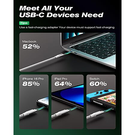 SwaggWood USB C to USB C Cable, 5-Pack [3/3/6/6/10FT] 60W $3.99 @Amazon