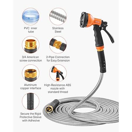 Amazon[amazon.com] has VEVOR Garden Hose Metal 50FT for $28.99 - $10.00 when you 'clip' the coupon on product page = $18.99. Shipping is free with Prime or on $35+ orders.