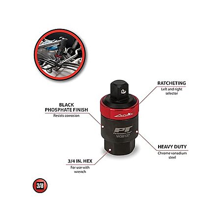 Performance Tool W38137 3/8-Inch Drive Ratcheting Adapter,Black $7.99