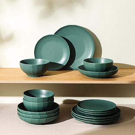 Stone Lain Rio 12-Piece Dinnerware Set Stoneware, Green - $28.06