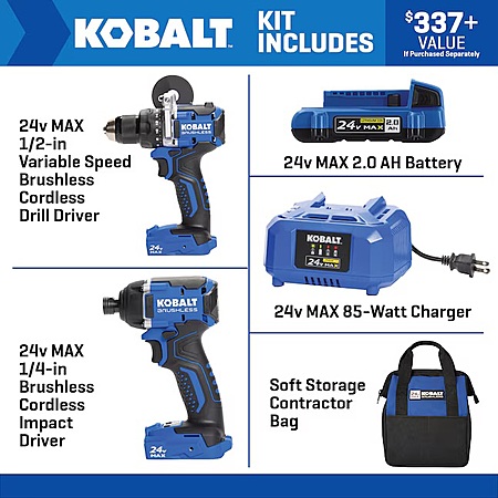 Kobalt 24-volt 2-Tool Brushless Power Tool Combo Kit with Soft Case (1-Battery Included and Charger Included) $99