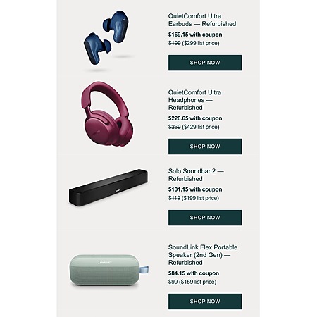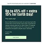 Bose Earth Day Sale Extra 15% off refurbished products with code SAVE15 This week only