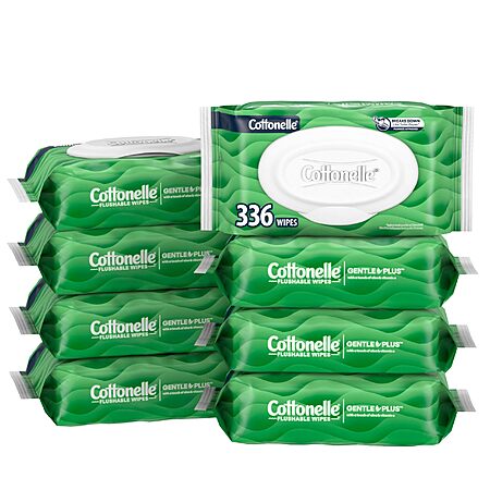 Cottonelle GentlePlus Flushable Wet Wipes with Aloe & Vitamin E, 8 Flip-Top Packs, 42 Wipes Per Pack (336) $9.78 or less S&S CLIP Q AMZ YMMV