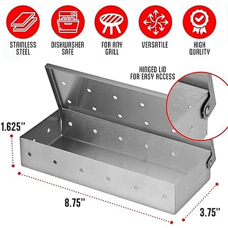 Model: Kaluns Universal Stainless Steel Smoker Box, Gas or Charcoal Grill Smoke Box, Works with Wood Chips, add Delicious Smoked Flavor, Hinged Lid,Warp Free Grill Accessories