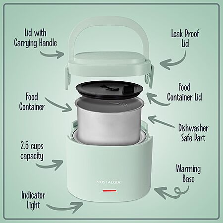Model: Nostalgia Electrics 20 oz. Portable Heated Lunch Box, Green