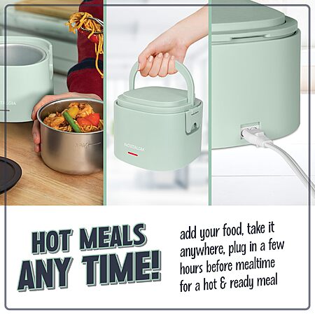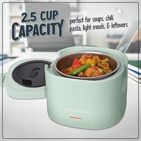 Nostalgia Portable 20-Ounce Electric Heated Lunch Box – Travel Size 2.5 Cup Capacity f Leak Proof Silicone Sealed Lid, Foldable Carry Handle, Detachable Cord – Sage $16.99