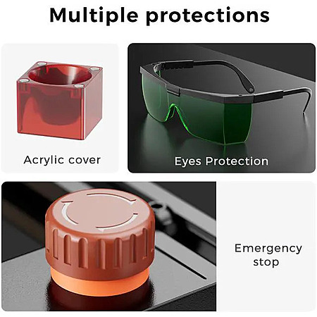 Enhanced Safety & Offline Engraving – Equipped with Emergency Stop, Eye Protection; supports offline engraving for flexible, cable-free projects anytime, anywhere.