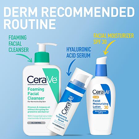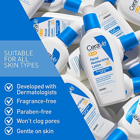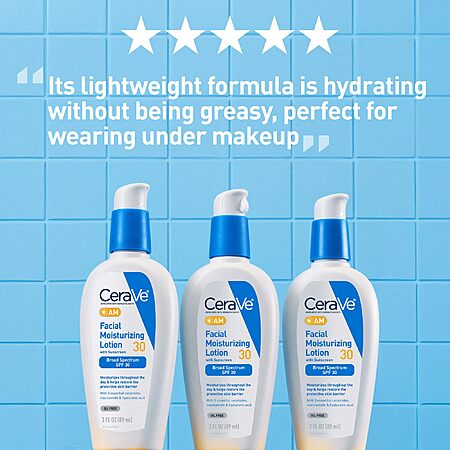 [S&S]CeraVe AM Facial Moisturizing Lotion with SPF 30, Oil-Free Face Moisturizer with SPF, Formulated with Hyaluronic Acid, Niacinamide & Ceramides, 3 Ounce $14.22