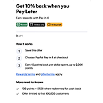 Select PayPal accounts: Get 10% back on Pay Later purchases, up to $20 back