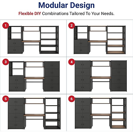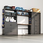 FlexiSpot via Amazon [amazon.com] has the FLEXIMOUNTS Garage Storage Cabinet System (Modular Metal Tool Cabinet w/ Workbench and Metal Board Shelf Includes Pegboard, 24-Gauge Steel, 117"(L) w/ 6 Doors) on sale for
