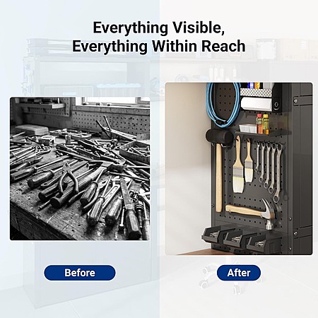 - Easy Tool Access: Dual-side pegboards keep frequently used tools visible and within reach