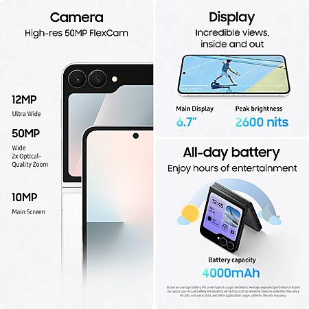 Samsung Galaxy Z Flip7 FE, 256GB AI Smartphone, US 1 Yr Manufacturer Warranty, Black $599.90