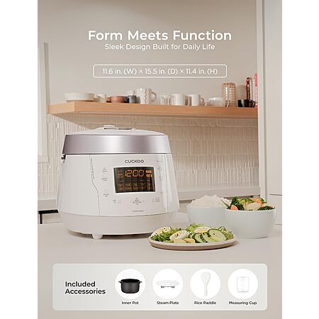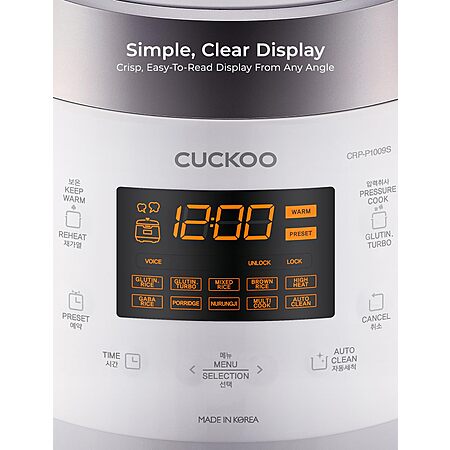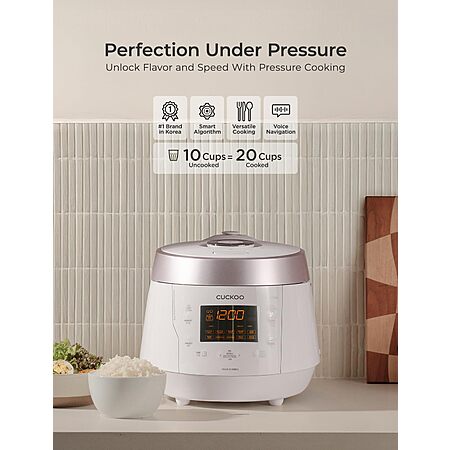 CUCKOO High Pressure Rice Cooker 10-Cup Uncooked [amazon.com] / 20-Cup Cooked with Nonstick Inner Pot, Large Rice Maker with 13 Menu Options and Steam Plate, Fuzzy Logic Tech, Voice Guide, White (CRP-P1009SW) $194.99