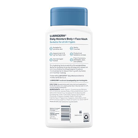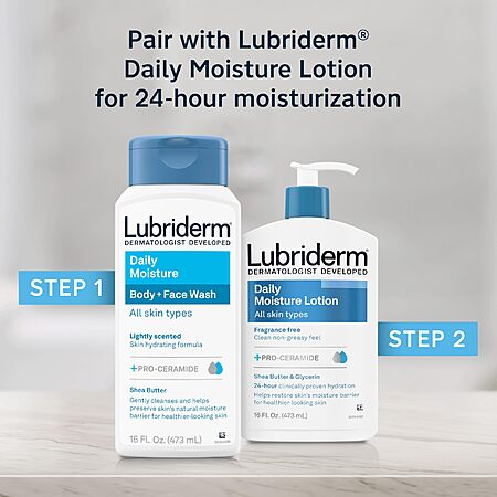 Lubriderm Daily Moisture Body + Face Wash, Hydrating Body Wash + Moisturizing Facial Cleanser with Pro-Ceramide & Shea Butter 16 fl. oz $9.7