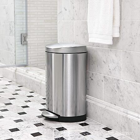 $18.09: simplehuman 6 Liter / 1.6 Gallon Semi-Round Bathroom Step Trash Can, White Steel at Amazon