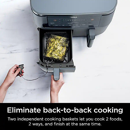 10-Quart Ninja Foodi XL DualZone 6-in-1 Smart Air Fryer w/ Thermometer Probe (Cyberspace, DZ550GY) on sale for