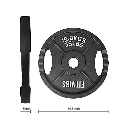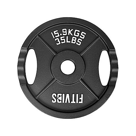 $50: 1-Pair 35-lb Fitvids Olympic 2" Cast Iron 2-Hole Style Weight Plate Set at Woot!