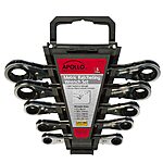 Amazon.com has Apollo Tools 5 Piece Metric Steel Ratcheting Wrench Set includes 5 Ratcheting Wrenches in Quick Release Case for Trunk, Garage and on the Road - DT1213 on sale for $15.99.