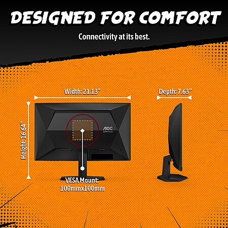 - 24" AOC Gaming G42 series monitor with 1920x1080 Full HD (1080P) Resolution Curved VA panel.Aspect ratio:16:9.Viewing Angle:170.0 degrees