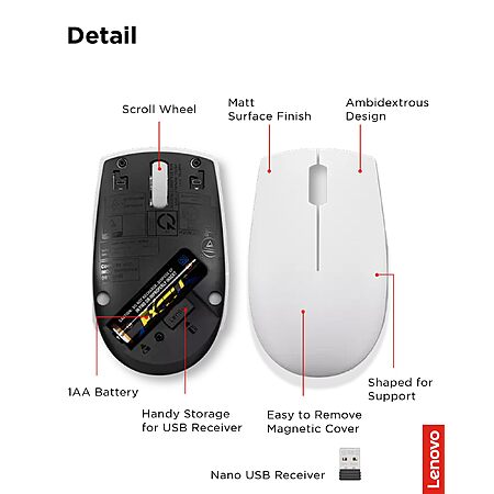 - Pocket-Friendly Portability: Experience unmatched convenience with the Lenovo 300 Wireless Compact Mouse's compact design. Slip it effortlessly into your pocket or laptop bag, ensuring that wherever you go, enhanced control and precision are right at your fingertips. Embrace a clutter-free, organized lifestyle while maintaining top-notch productivity.