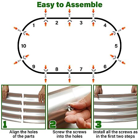 Model: Eclaron Galvanized Raised Garden Bed for Outdoor: 4X2X1ft Durable Metal Vegetable Plant Container Kit - Oval Planter Box for Gardening Flower Trough