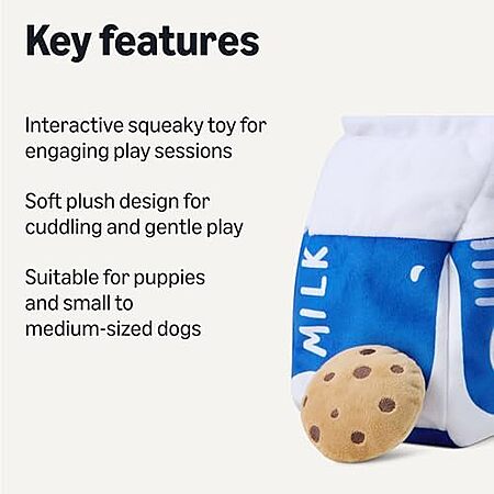 Model: Amazon Basics Interactive Dog Squeak Toys with 1 Milk Carton and 4 Cookies, Ideal for Puppies, Small and Medium Dogs